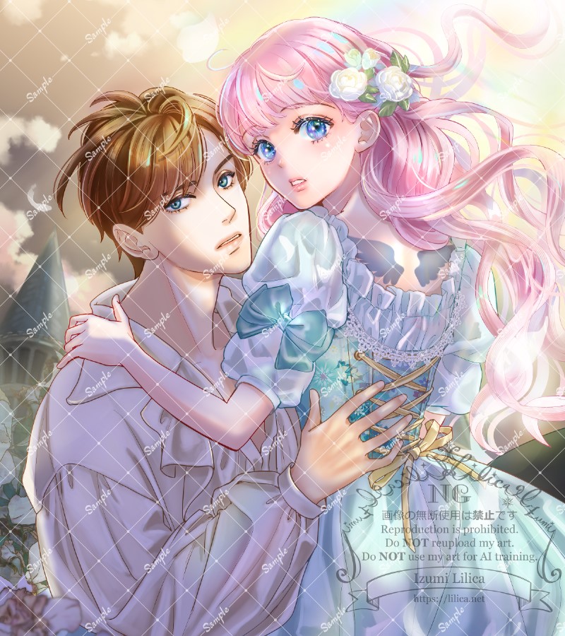 女性向け小説カバーイラスト 商業活動 2025.09.01 別名義にてカバーイラストを描かせていただきました。 物語の世界観に沿って、呪いが解けて徐々に光が射してくる様子を表せるように描きました。そしてヒロインの背中の翼は絶対に見せたい!ということで、背中が見える構図にこだわりました。